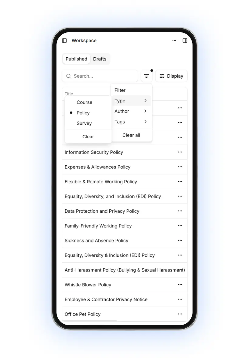 Click one button to turn a dry policy into an interactive 5-minute course. Ensure your staff understand the rules, don't just hope.